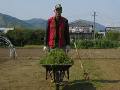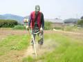 簡易ハウスを設置しています。道具も種もここで保管しています。陽射しが強いときは、簡易ハウスの中で休憩しています。配合肥料は自宅で保管しますが、牛ふん堆肥はここに置いています。耕運機はいつも使うので、鎖でつないだまま保管しています。借りている三ヶ所の畑で隣接していますから、大変便利な場所になりました。刈り草の置場にもなります。