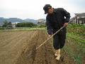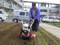 西4 石灰と牛ふんをまき、新しい耕運機で耕しました。そしてエンドウの種を蒔きました。