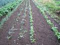 秋ジャガと同じ日に種まきです。これも1列だけです。冬にヒトモジのぐるぐるを食べたいものです。9月下旬には芽がたくさん出ました。現在草取りを兼ねて、土寄せをしています。(8月30日種まき)