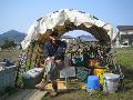 簡易ハウスを設置しています。ここには農具を置いています。最近は刈り草の処分場になっています。