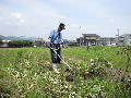 休日には草刈り機を持ち込み、孤軍奮闘の草刈りを続けました。スギナが繁殖したので、1下旬に強い除草剤をまきました。その代わり、一年間は放置しなければなりません。人が入らないように、ロープを張りました。