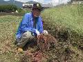 カライモ ツルが見えません。ツルが伸びている場所をさがし、9月9日に試し掘りをしました。まぁまぁの出来です。9月15日に1列、9月30日に最後の1列を掘り、収穫完了です。 5月13日定植