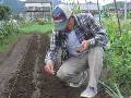 キュウリ 夏野菜の代表です。2列に種まきしました。6月下旬から毎日20本ほど取れるようになりました。近所に配っています。7月は毎日30本取れるようになりました。 5月9日種まき