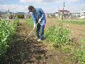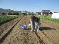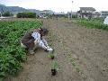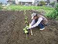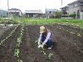 近所のおばあさんが、タマネギを植えています。山分けすることになりました。