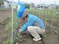4月16日に定植。畝に1列。1列80cm間隔で20株(4月16日木村ヒロセで・1個200円で4000円)