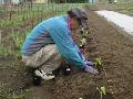 ヒトモジ 畝が1列できましたので、ヒトモジを植付けました。順調です。