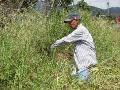 畑として利用できる状況ではありません。西と東の畑から出た野菜の茎や刈り草をここに捨てています。しばらくすると雑草が伸びますので、お手上げ状態です。9.4草刈りしました。9.5除草剤。