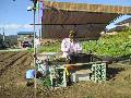 ハウス(8坪) 支柱11本のハウスです。ハウスの前に休憩場も作り、暑さ対策に日よけを作りました。9.5除草剤。10.5石灰散布。10.9耕しました。
