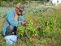 ピーマン 天候不順で生長が悪く、そして8月25日の台風で被害を受けました。9月6日に一部処理しました。10月に少しずつ採れるようになりました。しかし、枯れたり弱った株は処分しています。残っている株は役に立っています。10.16に支柱を引き抜いて、10.17に最後の収穫をしました。株は引き抜いて、ハサミで切りました。