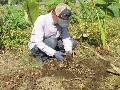 5月23日に自宅倉庫のサトイモを持ち込み、補充の植付けをしました。補充したのは初めての経験です。7月末にもらってきた米ぬかをまきました。肥料になります。8月下旬の台風で、イモの葉が吹き飛びました。9.4除草剤。9.8草刈り。9月9日に試し掘りをしましたが、まだ早すぎました。10月18日に家族のために初収穫です。今度は育っていました。
