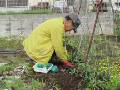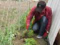 日よけシートを設置しました。手作りの木製ベンチを持ち込み、さらに支柱のパイプを交換しました。北側の畑で農作業をしたら、ここで休憩します。5月14日から花苗の移植作業を始めました。最初はマリーゴールドです。