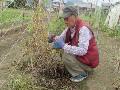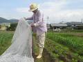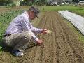 エダマメ 畝1列の半分を利用して、3列の種まきをしました。カラスとハトが食べるので、不織布を張りました。エダマメは孫が喜んで食べますから、今年は時期をずらしてたくさん植えます。時期をずらしたので、不織布を連続で使用しています。5月に入り、土寄せをしています。