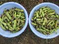 ソラマメ 一つの畝に2列の種まきです。計4列になりました。元気に生長しています。3月上旬にアブラムシの駆除をしました。4月下旬にサヤが大きくなりました。4月29日に初収穫です。5月連休から本格的に収穫しています。美味しい美味しいソラマメも、5月14日に収穫を終わりました。 10月15日種まき