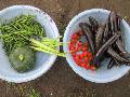 6月の主な作業は、野菜の収穫です。カボチャ、インゲン、エダマメ、ナス、ピーマンが採れます。長雨で草が伸びました。