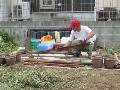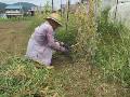 8月24日からキュウリの処理をしています。ネットに雑草が絡んでいて、ネットがなかなか外れません。