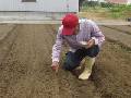 ナス 畝7列に長ナスを定植しました。畝幅80cmで苗の間隔は60cmです。計算では84株ですが、2株抜けていました。これからの作業は、ピーマンと同じです。4月4日、4月28日に肥料。5月6日支柱完了。5月11日ひもかけ完了。5月21日草取り・肥料まき・脇芽切りが終了。