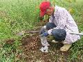 北D2(16坪) 1列だけのサトイモの収穫をしています。