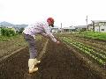 ナス 畝7列に長ナスを定植しました。畝幅80cmで苗の間隔は60cmです。計算では84株ですが、2株抜けていました。これからの作業は、ピーマンと同じです。4月4日、4月28日に肥料。5月6日支柱完了。5月11日ひもかけ完了。5月21日草取り・肥料まき・脇芽切りが終了。