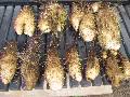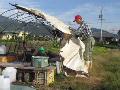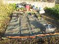 ゴーヤの株は、11月中旬にやっと処分しました。11月23日にハウス内とその周辺の草刈りを済ませ、シートを広げて親サトイモを並べました。来年の種イモになります。