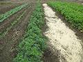 ニンジン いよいよニンジンの種まきです。耕して幅90センチの畝を作り、3列の溝を切りました。この作業を繰り返して、2列の畝・6列に種まきしました。水かけはせず、雨が降るのを待ちます。その後も種まきを続けました。