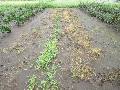 5月中旬に発芽しています。まばらです。放置していたソラマメの茎を草刈り機で処分しました。7月下旬には雑草で埋まりました。どうにもなりません。