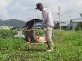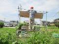 7月11日に寒冷紗を一枚載せました。もう一枚載せる予定です。耕運機と草刈り機には、雨が当たらないようにしたいのです。12日にやり直しです。13日に作業場と農道を草刈りしました。