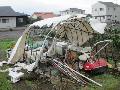 7月3日の台風3号のために、テントシートがボロボロに破れました。たいしたことはないと、小型台風をなめていました。7月4日にシートは外して処分して、パイプも元通りにしました。上に何を載せるか考えています。