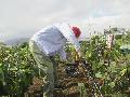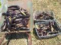 今年はすばらしいナスが取れるようになりました。ときどき倒れないようにひもかけをしています。台風で倒れました。7月15日に100本ほど取れましたが、ナスの皮が茶色になっている物は捨てました。原因がわかりません。