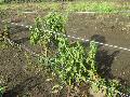 ミニトマト 畝1列にアイコを8株と、ミニキャロルのミニトマト6株を定植しました。パイプを2列に打ち込み、ひもで2本ずつ縛りました。 4月12日植付け