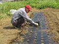ニンニク 穴あきマルチを張って、ニンニクの植付けをしました。マルチは雑草対策になります。 9月3日植付け