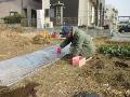 12月13日にパイプを立てて、ネットを張りました。今回はネット下の草取りは確実にしたいものです。5月ころには大変なことになるからです。12月23日に肥料をまきました。2月上旬の寒波のために、苗が枯れかかっています。