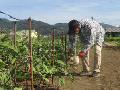 キュウリは7月末に枯れました。草刈りを済ませ、さらに除草剤をかけました。空いている畝を、8月19日に耕しました。8月20日に石灰をまきました。
