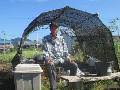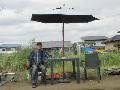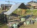 パイプを数本抜いて、シートを広げました。ここに農作業の道具を置きました。整理整頓が大切です。