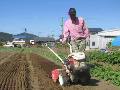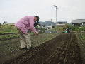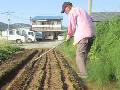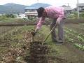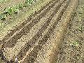 秋ジャガ 畝を耕して、ジャガの植え付けです。種は5月に掘ったメークイン。(西) 9月6日日植付け