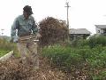 刈り草をここに集めて、ときどき袋に詰めています。除草剤をかけました。