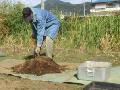 ここの空き地に刈り草と野菜くずを集めています。10月中旬から少しずつ90L袋に詰める作業をしています。