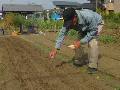 畝が1列空いていましたので、整地して2列の種まきです。1列に1袋の種で済みました。