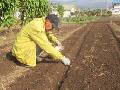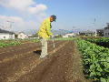 キョウナ チンゲンサイの横に種まきです。2列です。畝E 10月16日種まき