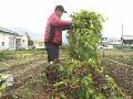 夏から十分に生長しています。来年4月からは収穫できそうです。8月26日に耕して、畝を広くしました。9月3日に肥料をまきました。10月も肥料をまきました。12月上旬から霜が降りて、葉も黄色くなりました。12月12日に茎をすべて切り、90g袋に詰めました。