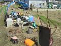 テントにはブルーシートをかけました。収穫したダイコンの葉が集まっています。ときどきダイコンの葉は、北Eに捨てています。