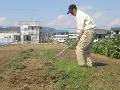3月末には作業が終わり更地になりましたが、野菜を育てることはできません。4月から再び草刈りをしています。カヤとスギナは根が強いです。