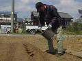 空き地を4月12日に耕しました。4月13日に畝を3列作りました。