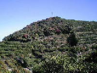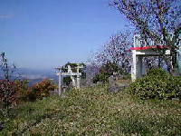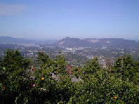 山頂は鳥居・巨石・展望台・トイレがあります。広い場所ではありませんが、公園としての施設は整っています。展望台は昭和52年に完成したものです。そして、東西南北に見晴らしがよく、山北小学校の校区も木葉山も一望できます。あたり一面みかん山です。下の写真は半高山頂上から木葉地区を写したものです。