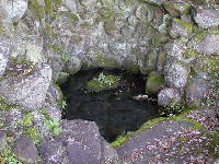明治10年(1877)の西南戦争において、飲料水として使用された井戸(湧水池)です。玉東町の横平山の登山道にあります。兵站(へいたん)というのは、軍隊の後方にいる支援部隊のことです。食料・水・武器・弾薬等を補給します。薩摩軍も官軍も負傷兵は、水を求めてこの湧水池にたどりつき、何百という兵がここで絶命したということです。