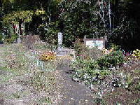 このお墓は記念碑として、玉東町が建設したものです。場所は山北小学校に近く、県道バス停に案内板があります。そこから細い道を少し登ったところにあります。かなり大きなお墓で、墓石の左側に説明が書かれています。手入れが行き届き、地域の方が花を供えています。近所の方のお話によりますと、お骨の場所は下の写真の標識の下にあるということでした。