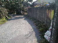 国道208号線、玉東町と植木町が隣接する場所に、境木バス停があります。そこに「田原坂攻撃官軍第一線」と刻まれた碑があります。ここから細い道が東に伸びています。この道が西南戦争当時のままの高瀬往還です。