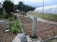 玉東町中央公民館から、二俣へ向けて東へ直進します。やがてなだらかな坂が1kmほど続きますが、途中に小さな地蔵堂があります。ここで左折すれば、突き当たりに「官軍砲兵陣地跡」を示す石碑があります。