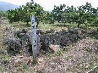 玉東町原倉の立岩(たていわ)に、いくつかの薩軍兵士の墓があります。道沿いに木の標識がありますので、すぐにさがすことができるでしょう。ミカン畑の中にありますが、薩軍が立岩での戦いに敗れ放置された遺体を、地域の方が埋葬したと思われます。