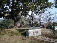 玉東町から一の坂・二の坂を登り、田原坂公園へ着くと大きなクスの木が目につきます。そこに、この美少年像が建てられています。民謡「田原坂」に、・・・右手に血刀 左手にたずな・・・と歌われています。その姿を表しています。薩軍には、現在の高校生にあたる年令の少年が兵士として数多く参加していました。