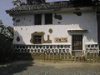 これは、「弾痕の家」です。西南戦争当時の被害にあった家の模型になります。これも資料館の一部です。当時の写真が残っていますので、それをもとに造られました。戦場では数多くの銃弾が飛び交い、壁にはその跡がのこりました。戦争に関係ない人々は親戚をたよって疎開したと思われますが、家や家財道具のことは気がかりだったはずです。